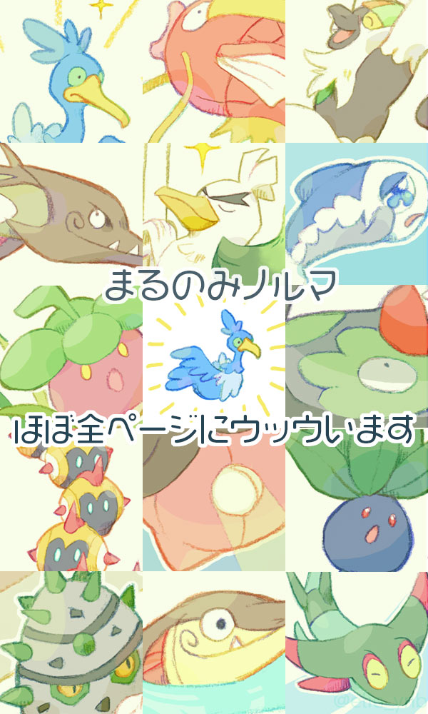 9/27(日)のチャレ!20は椎葉りささんのスペースにウッウ中心イラスト本「まるのみノルマ」を委託させてもらいます!