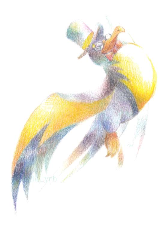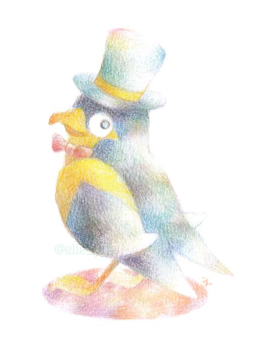 燕だから燕尾服かな~シルクハットもかぶってみよう!と描いたものです。