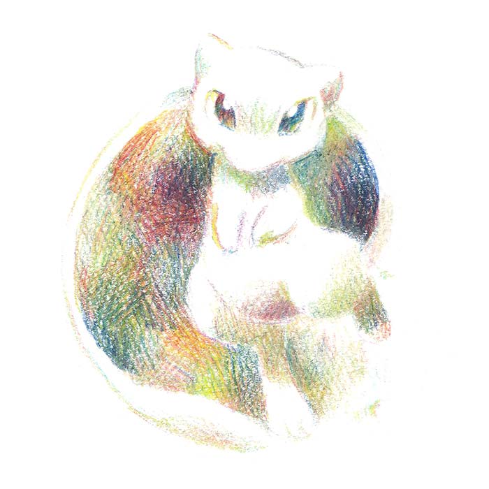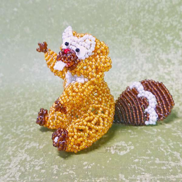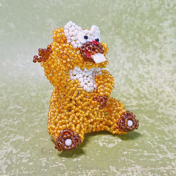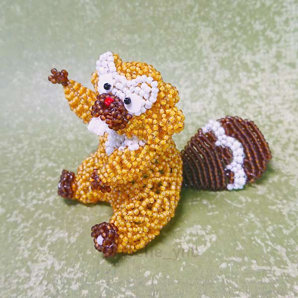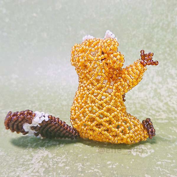 前歯をビーズステッチで作ったり、しっぽの模様がキレイに出るように頑張ったり、太ももの曲線頑張ったり…